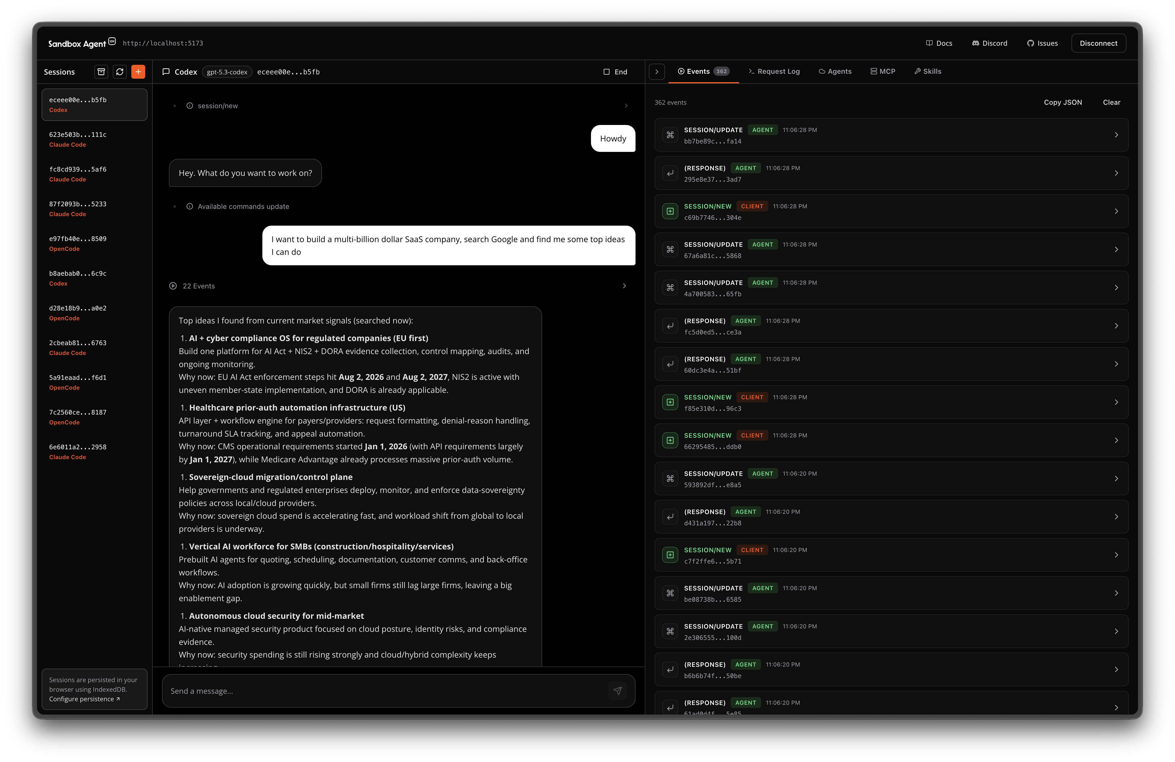 const client = await SandboxAgent.start({